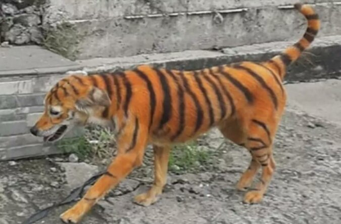 W tym celu mężczyzna nabył specjalną farbę ziołową i namalował na psiej sierści charakterystyczne czarne paski. Pomysł był tak udany, że nawet pies został zainspirowany. Sam zwierzak był ofiarą małpiej podstępności - sprytne naczelne często kradły mu jedzenie z miski.