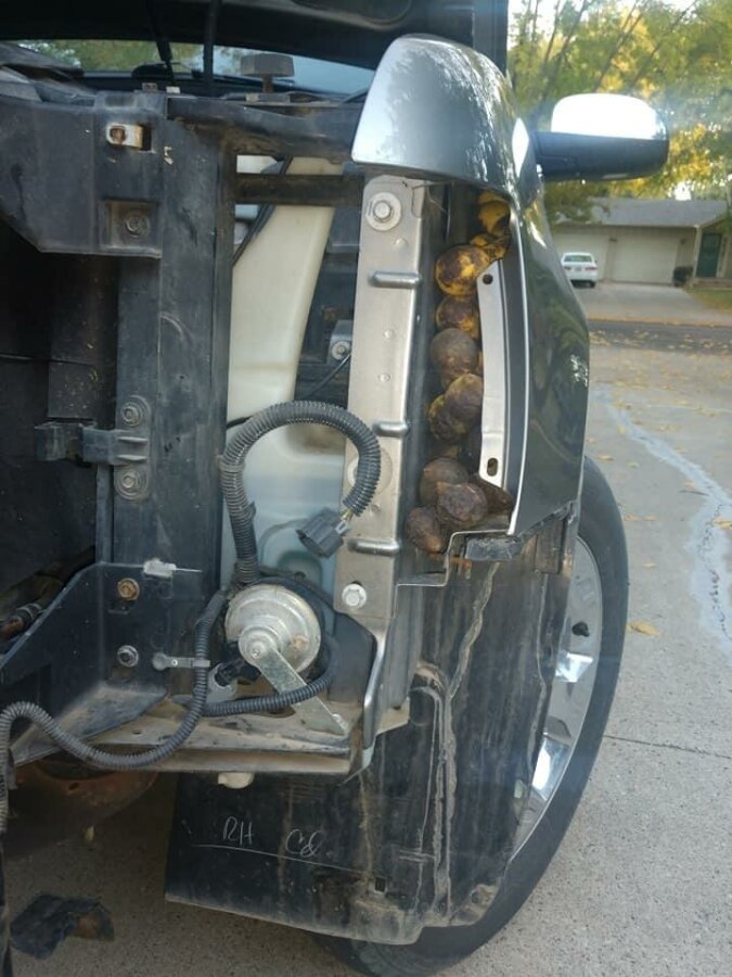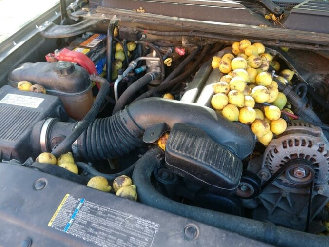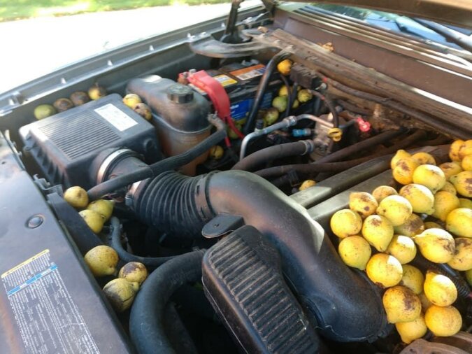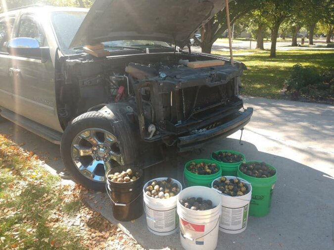 Bill Fisher, mieszkaniec Północnej Dakoty, zaparkował swojego Chevroleta Avalanche na parkingu koło zalesionego terenemu na zaledwie cztery dni. Kiedy wrócił, zobaczył, że jego samochód jest przepełniony czarnymi orzechami włoskimi.