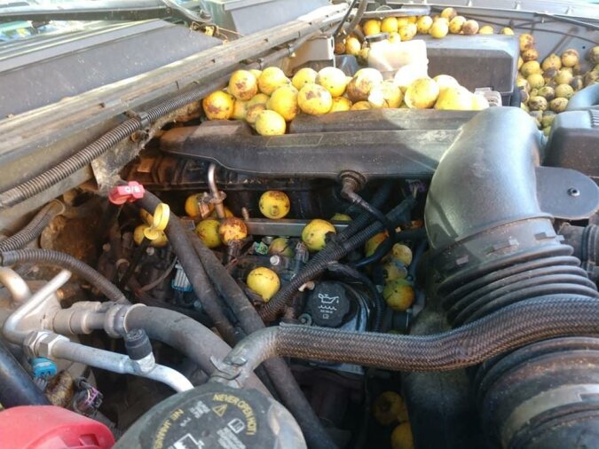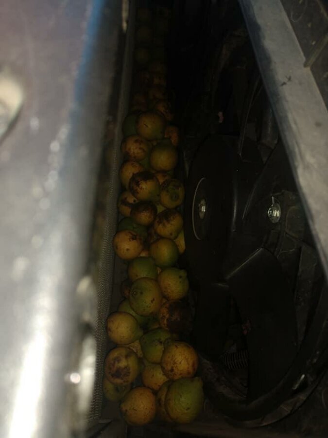 Zdjęcia pokazują, że Fischer wyciągnął ze swojego samochodu kilka wiader orzechów. Pracowita ruda wiewiórka wypełniała każdy kąt komory silnikowej. Mimo że Fischer wyciągnął większość orzechów, niektóre są niedostępne: „Słyszę, jak toczą się po podwoziu, ale po prostu nie mogę się do nich dostać,” – powiedział Fischer.
