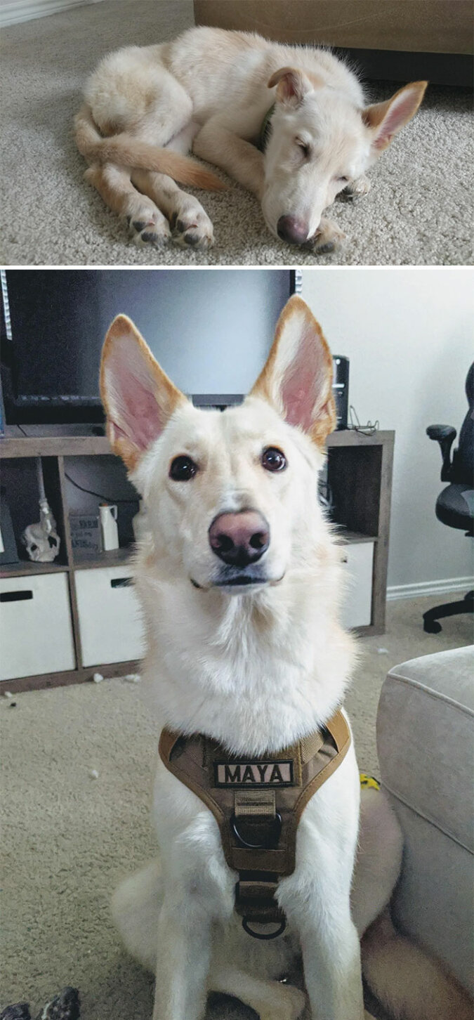 10. Urocza blondynka Maya, rok po „adopcji”. Szczeniak trafił do schroniska bardzo wychudzony. Teraz dzięki miłości i trosce Maya jest prawdziwą pięknością.