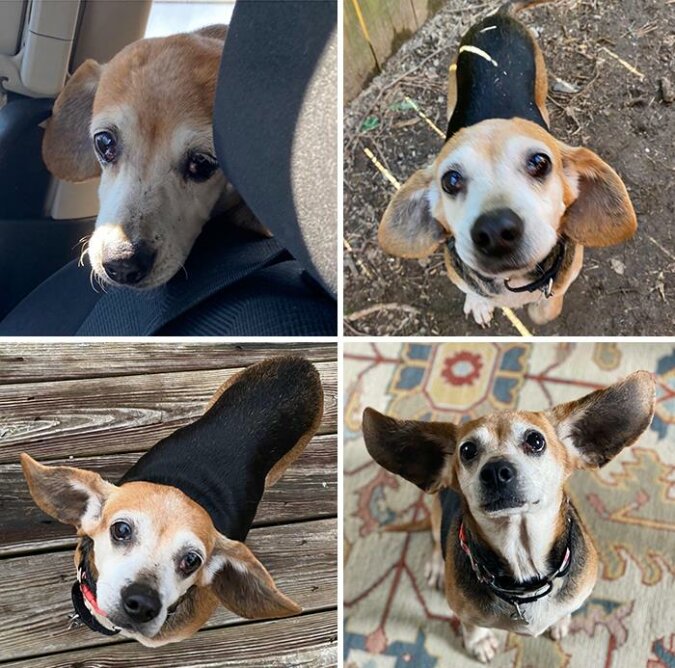 8. Cóż, ten uroczy kolaż, od pierwszego zdjęcia do dnia dzisiejszego, został zrobiony o ulubionym zaadoptowanym zwierzęciu przez jego właściciela. Uważa, że najbardziej wyrazistą i emocjonalną częścią ciała psa są jego wystające uszy.