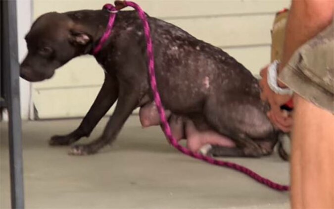 Nikt nie wie, jak długo ta samotna psia mama błąkała się po ulicach. Nie nawiązywała kontaktu z ludźmi, była wystraszona, ale nie agresywna. Wciąż jednak przebywała w pobliżu pewnego domu. Ktoś wreszcie zlitował się nad nią i zadzwonił do pewnej fundacji. Suczka, podążając za intuicją, od początku zaufała ratownikom. Ci zaś szybko domyślili się, z czego wynika jej zachowanie. Podążąjąc za jej tropem dotarli do posesji, której tak bardzo nie chciała opuścić. Sytuacja powoli stawała się jasna.