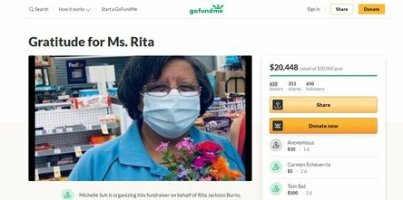 Sąsiedzi, dowiedziawszy się o kolejnym dobrym uczynku swojego ulubionego pracownika sklepu, postanowili zorganizować dla Rity zbiórkę pieniędzy za pośrednictwem platformy crowdfundingowej, aby wyrazić szacunek i wdzięczność za jej trudną codzienną pracę. Początkowo mieszkańcy chcieli przekazać kobiecie pięć tysięcy dolarów, ale darowizny nie ustały, dzięki czemu dobroczyńcy zebrali ponad 20 tysięcy!
