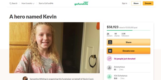 Samantha postanowiła za pomocą platformy crowdfundingowej zebrać fundusze, dzięki którym jej wybawca mógłby zrealizować swoje długoletnie marzenie o poślubieniu ukochanej i zabraniu jej na romantyczną wycieczkę. „Gdyby nie zaryzykował swojego życia, nie tylko mnie, ale i mojej małej dziewczynki nie byłoby na tym świecie - mówi Samantha. - Kevin zasługuje na znacznie więcej.”