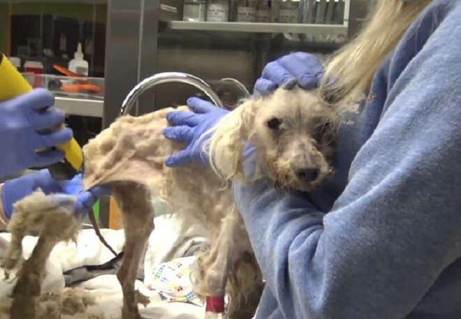 Jeszcze tego samego dnia Alice pożegnała się ze swoją skołtunioną sierścią, a wolontariusze i lekarze zobaczyli wychudzone ciałko z wystającymi żebrami i malutkimi łapkami. Założono jej ciepły sweter, aby utrzymać ją w cieple i pomóc w utrzymaniu temperatury ciała.