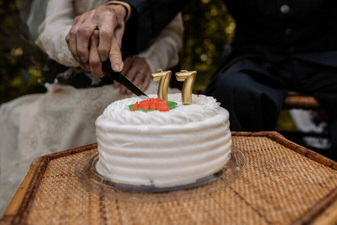 W obecności swoich dzieci, wnuków i prawnuków, para ponownie wymieniła przysięgę na dziedzińcu swojego domu, udekorowanym prowizorycznym ołtarzem i wiązankami kwiatów. Nikt z obecnych nie mógł powstrzymać łez, patrząc na miłość w ich oczach, którą było widać nawet po 77 wspólnych latach.