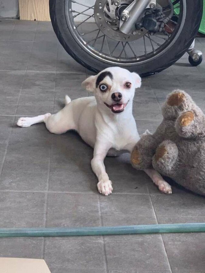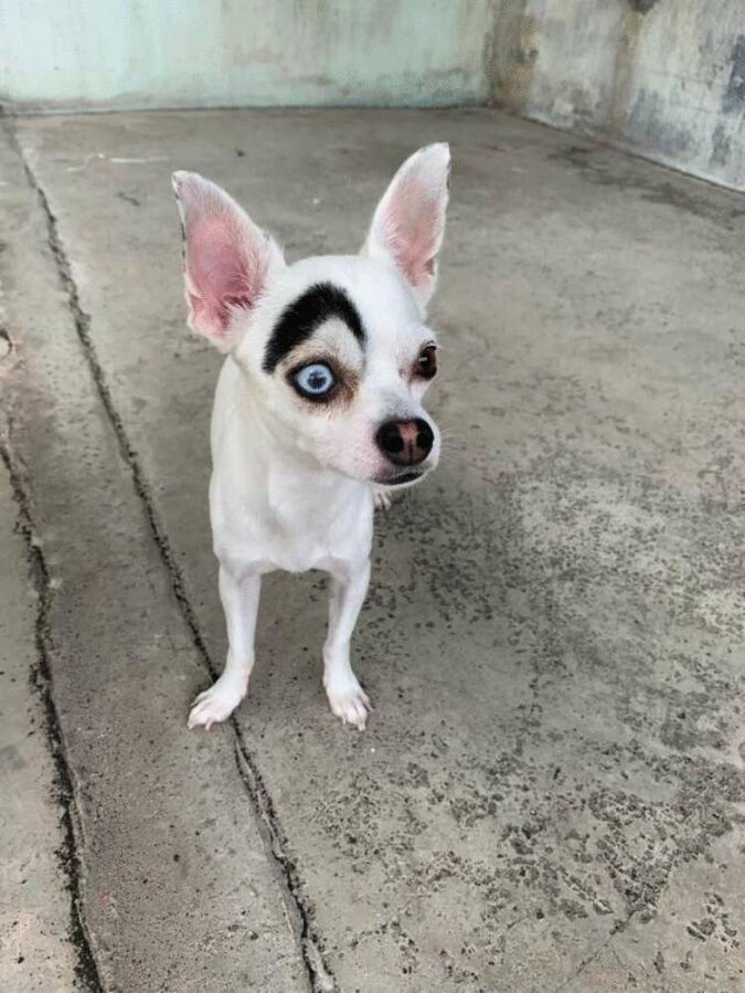 Ale przyjrzyj się uważnie, bo Lucky to prawdziwe arcydzieło natury. Ma teraz 2 lata i dopiero co trafił do domu Charice. Drugiego takiego psa jak on nie znajdziesz nigdzie indziej.