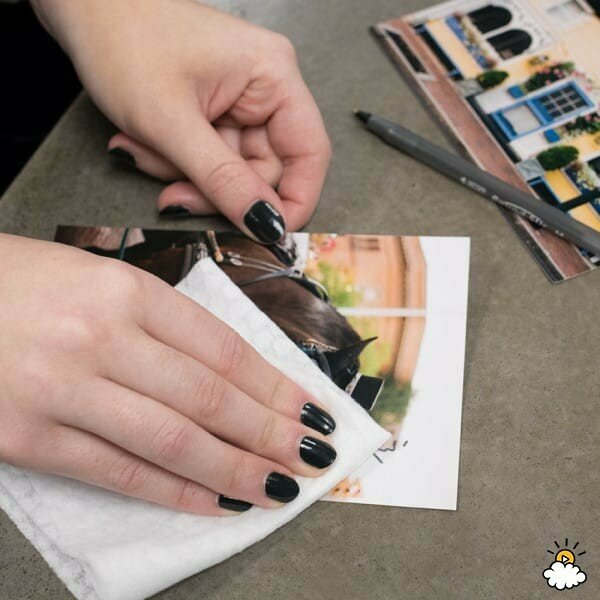 Na starych zdjęciach często widać ślady długopisu, które można łatwo usunąć chusteczką nawilżaną. Natomiast zdjęcie nie zostanie uszkodzone.