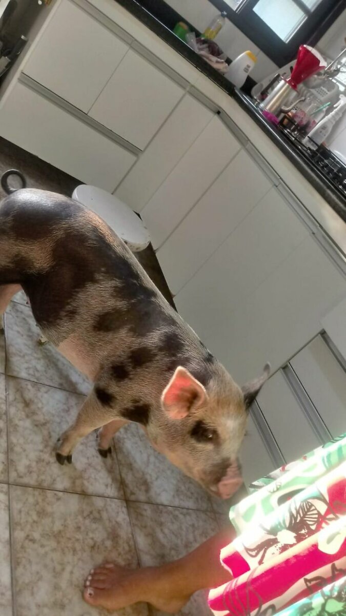 Świnka dobrze się odżywiała, nie robiła bałaganu i pilnie przybierała na wadze. Szybko nauczyła się, co może, a czego nie może robić w domu, dostała swój własny materac i stała się pełnoprawnym, rozpieszczonym domowym zwierzakiem.