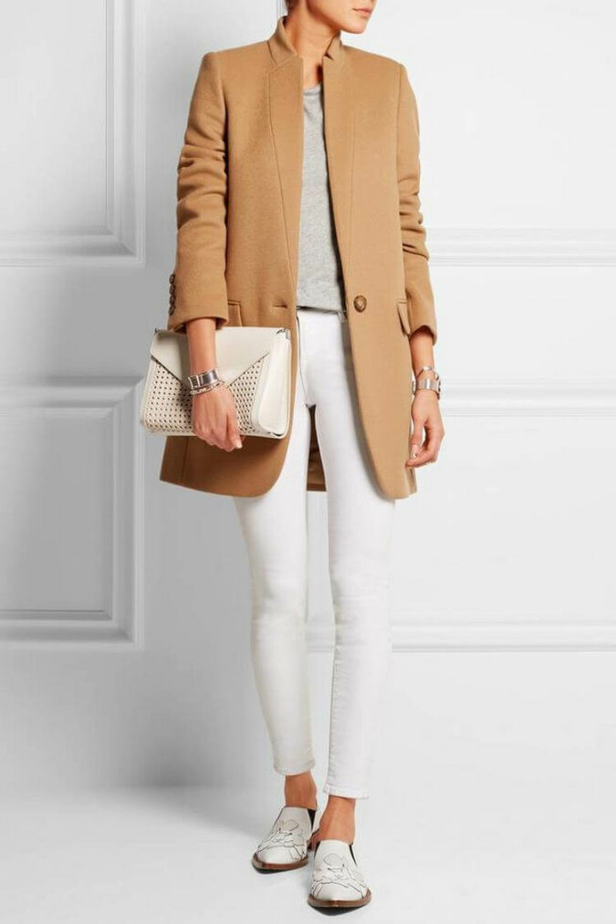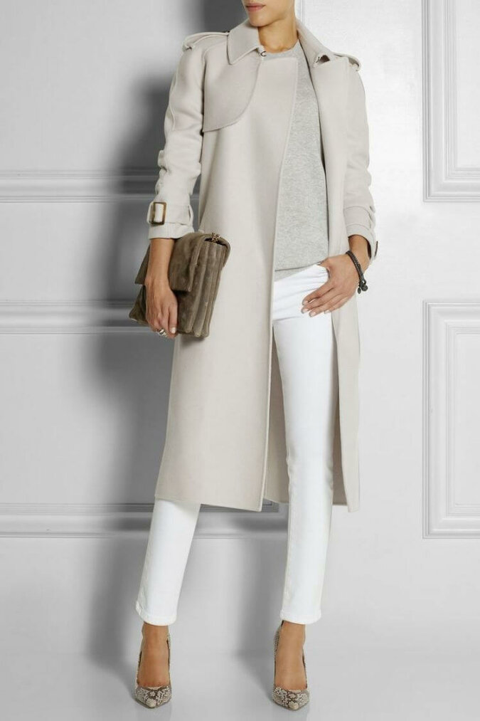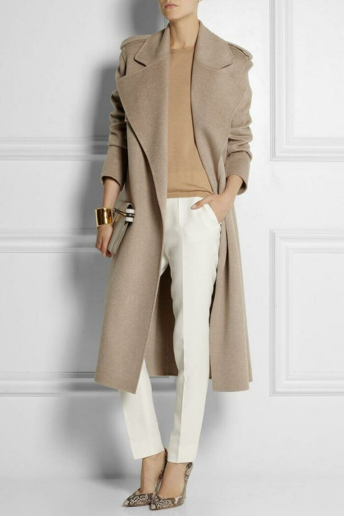 Kaszmirowy płaszcz i białe spodnie - elegancko i wygodnie!