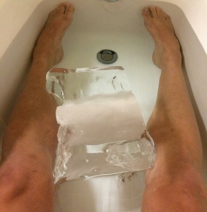 Kąpiel z 15 kg lodu na zmęczone nogi
