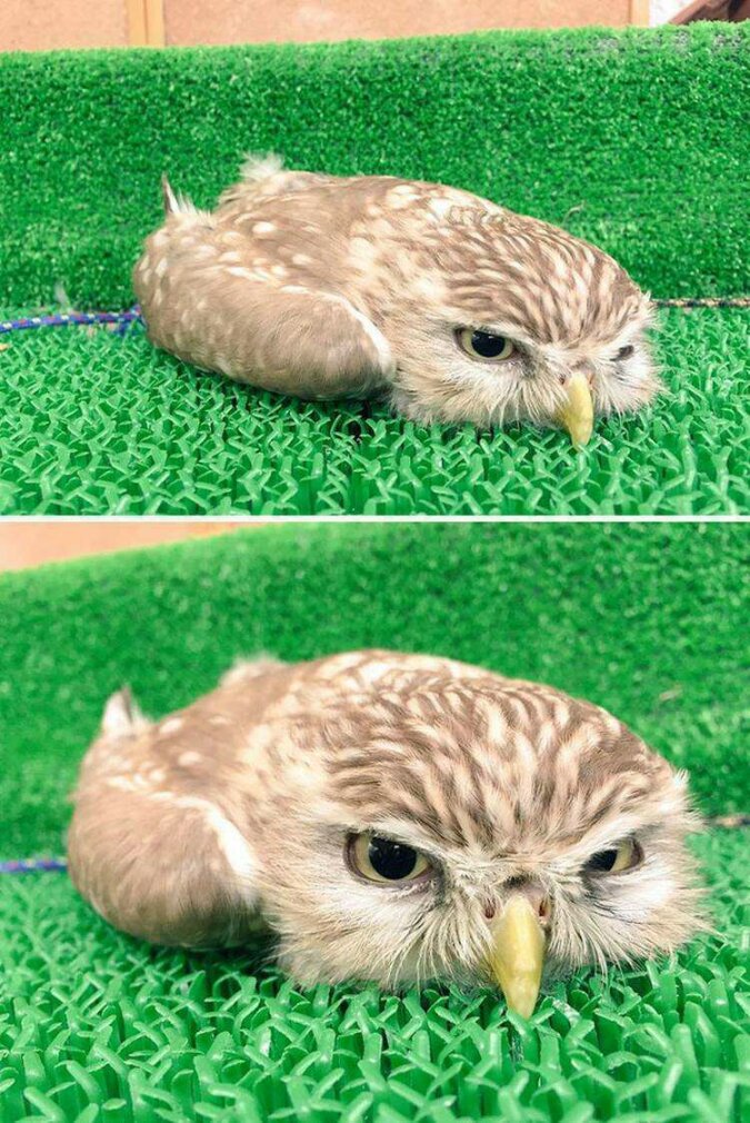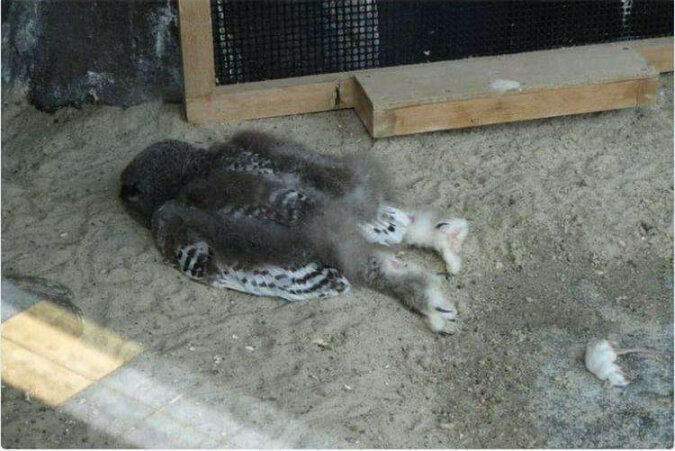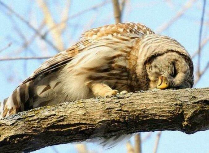 Ale śpiące sowy są bardziej zabawne. Leżą właśnie w taki sposób!