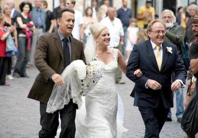 Ze względu na tłumy podczas kręcenia filmu „Anioły i Demony”, nowożeńcy nie mogli przejść. Aktor przerwał kręcenie filmu i osobiście poprowadził pannę młodą do ołtarza.