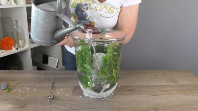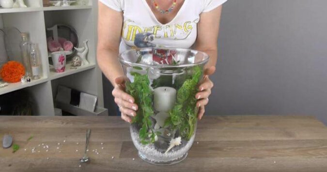 Umieść rośliny wodne (naturalne lub sztuczne) w szerokim wazonie. Można je kupić w sklepach akwarystycznych. Do dekoracji na święta można wykorzystać gałązki świerkowe lub sosnowe.