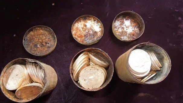 Okazało się, że w pobliżu drzew ukryte były cztery takie puszki wypełnione monetami. Para skontaktowała się z odpowiednimi władzami i udokumentowała prawo do korzystania ze znaleziska.