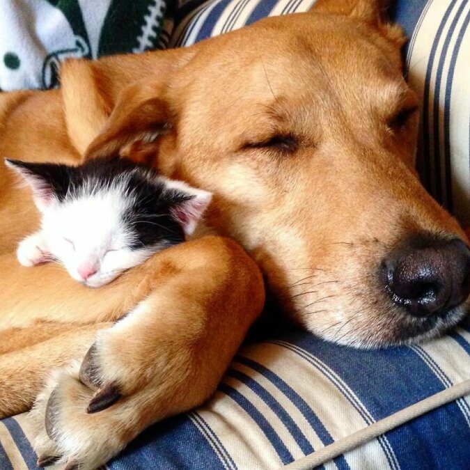 Uważa się, że koty i psy nie lubią siebie nawzajem. Historia tego psa obala wszelkie możliwe stereotypy.