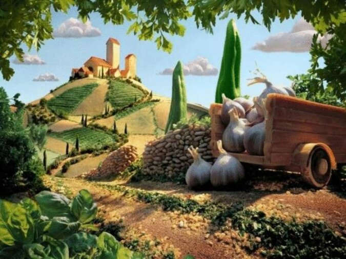 Carl Warner jest uważany przez otoczenie za dziwaka: godzinami ogląda warzywa w supermarketach. Carl jest mistrzem gatunku foodscape („pejzaż z jedzenia”). Na jego obrazach góry zrobione są z chleba, drzewa to brokuły, fale to liście kapusty, a skały to pieczone ziemniaki.