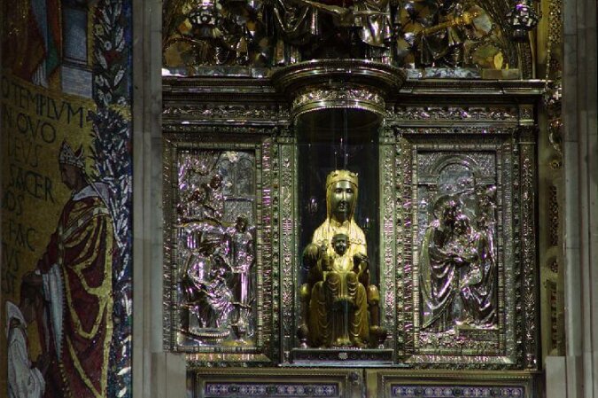 Klejnotem klasztoru jest drewniana rzeźba Czarnej Madonny. Jest to 95-centymetrowa rzeźba Madonny z dzieciątkiem na kolanach. Narodowe sanktuarium Katalonii wykonane jest z czarnej topoli i pokryte złotymi szatami. Tron Madonny wykonany jest ze srebra. Według legendy, Czarna Madonna została stworzona przez apostoła Łukasza w 50 r. n.e., a następnie przewieziona na Półwysep Iberyjski przez apostoła Piotra. Uważa się, że jeśli dotkniesz kuli w rękach Madonny, która symbolizuje pokój, twoje życzenie na pewno się spełni. Droga, która do niej prowadzi, jest również rodzajem rytuału. Idąc tą drogą, powinieneś milczeć i myśleć o swoim życzeniu.