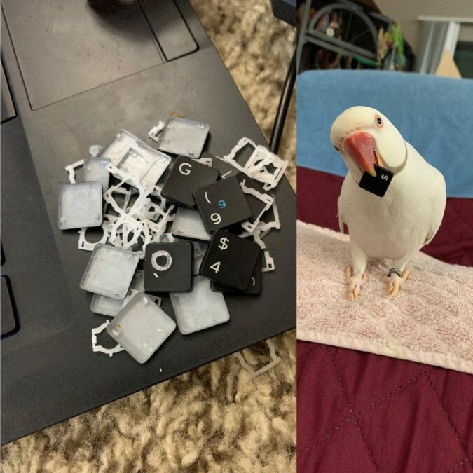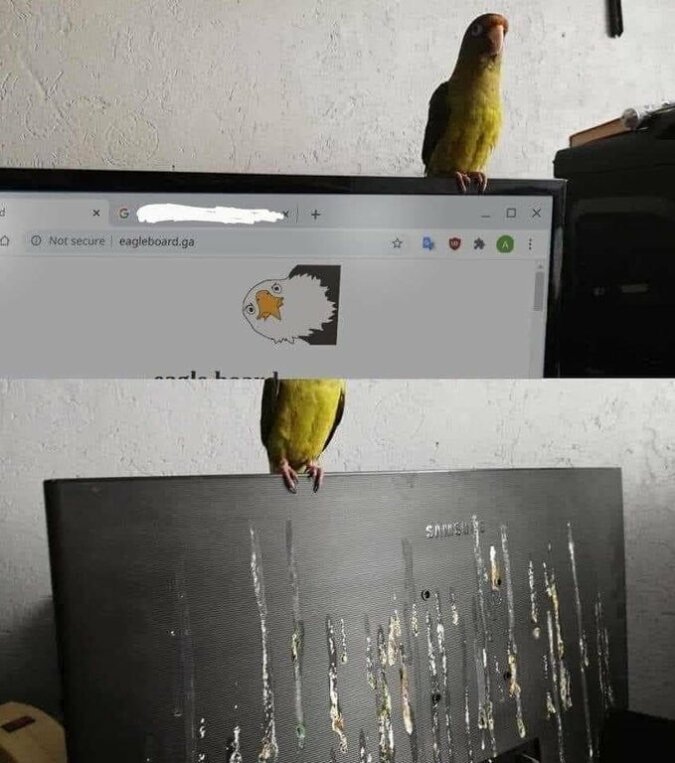 Papuga, która nie zrobiła nic złego. Po prostu siedziała i sumiennie robiła kupę.