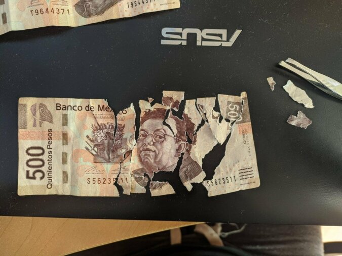 Szczeniak wybrał do zabawy jeden z największych banknotów.