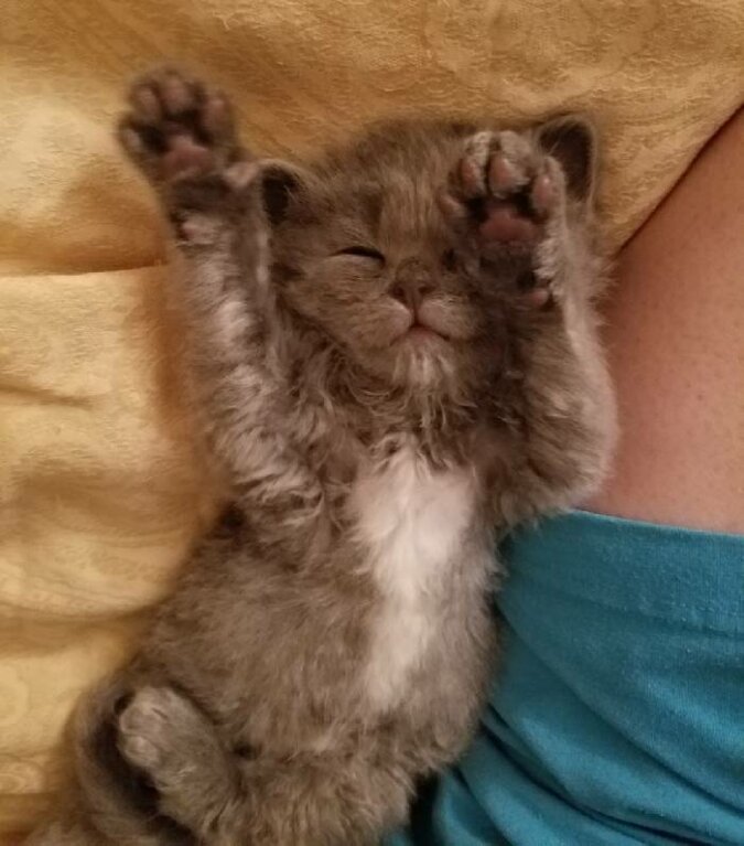 Minęło pięć miesięcy i malutki kociak wielkości dłoni wyrósł na wspaniałego, puszystego kota, który każdego dnia okazuje swoim właścicielom miłość i wdzięczność.