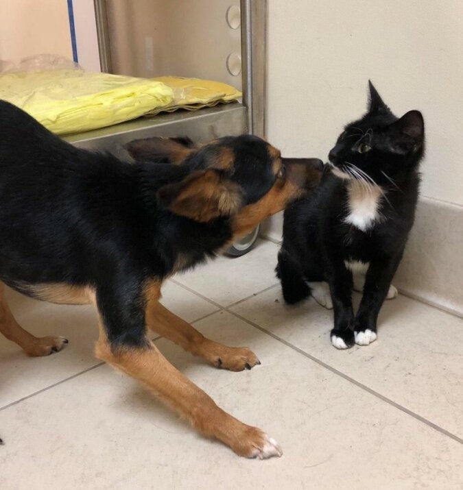 Po zbadaniu zwierząt okazało się, że są zdrowe, jedynie pies był bardzo przestraszony. W klinice postanowiono nie rozdzielać przyjaciół, dlatego ta dwójka cały czas siedziała obok siebie.
