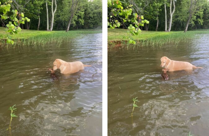 Cudowny uczynek sześcioletniego goldendoodla o imieniu Harley wydarzył się kilka tygodni temu, kiedy jego właściciel, Ralph Dorn, zamieścił na swoim blogu zdjęcia i filmik z tego zdarzenia. Wszystko zaczęło się, gdy pies zniknął, a Ralph i jego żona Pat wyruszyli na jego poszukiwanie. Harley został znaleziony w jeziorze niedaleko domu. Płynął w wodzie, trzymając w zębach zwierzę. Wkrótce dzielny pies wyciągnął na brzeg maleńkiego jelonka.