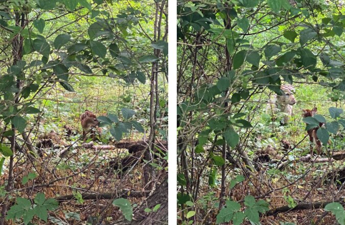 Według Ralpha jego pies ani na chwilę nie zostawił jelonka. Opiekował się nim i uważnie obserwował jego stan. Wkrótce młody się ogrzał. Wtedy w krzakach rozległ się hałas i maleństwo uciekło do matki.
