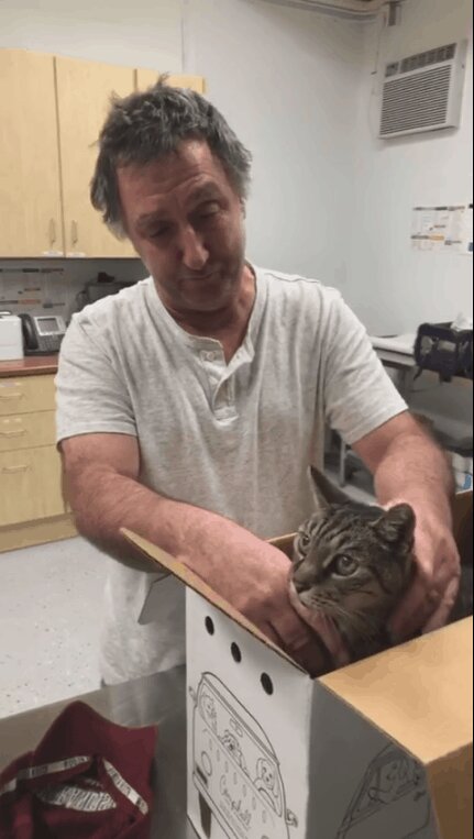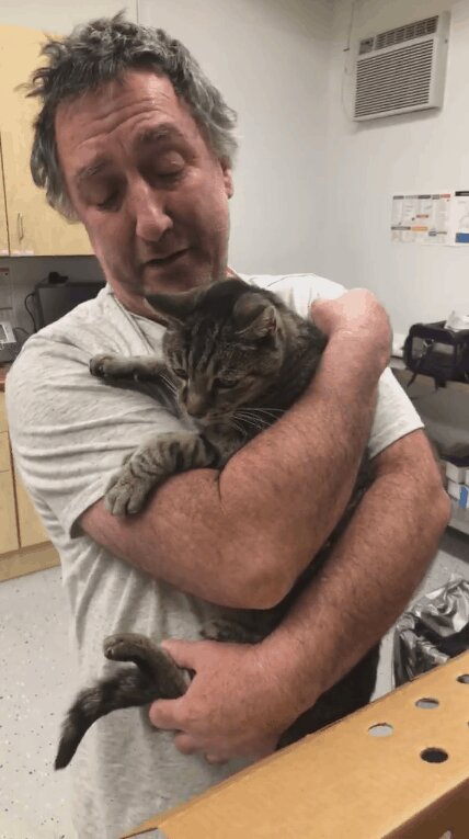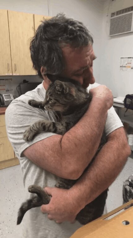 Kiedy Robert wszedł do pokoju i pudełko z siedzącym w nim kotem zostało otwarte, mężczyzna się rozpłakał.