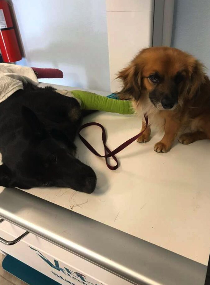 Decydując się spróbować szczęścia, zwierzę zostało załadowane do samochodu i przewiezione do kliniki. Przez całą drogę obok owczarki stał rudy pies, który nie zostawił jej ani na krok. Nawet weterynarze byli zaskoczeni takim oddaniem zwierzęcia.