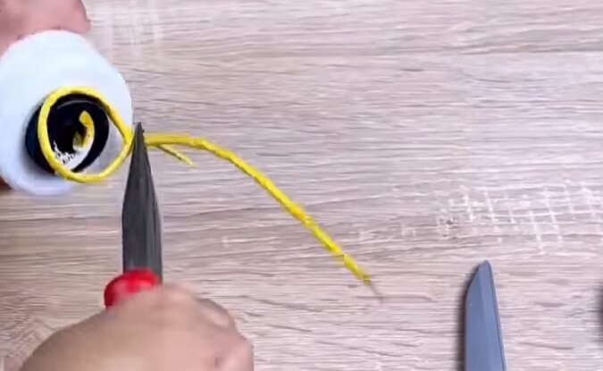 Potnij cienki drut na kawałki i owiń każdy kawałek celofanem. Przymocuj górną i dolną część.