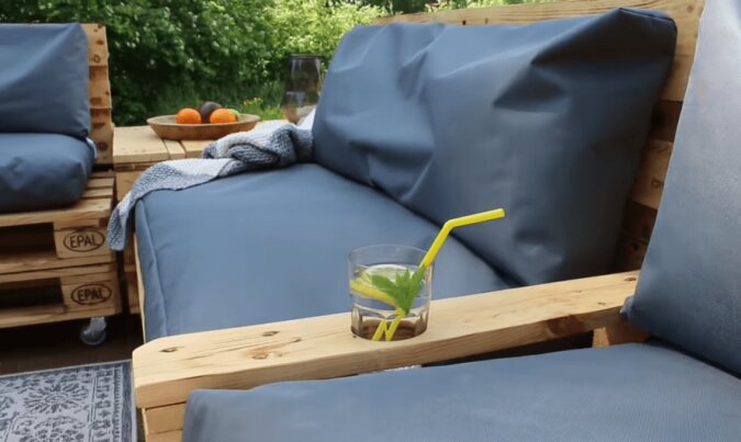 Powstałe w ten sposób podstawki pełnią funkcję uchwytów na kubki. Aby zapełnić jak najwięcej miejsca, do złożenia stolika można wykorzystać skrzynki lub palety. Siedzenia i oparcia należy wyposażyć w miękkie materace.