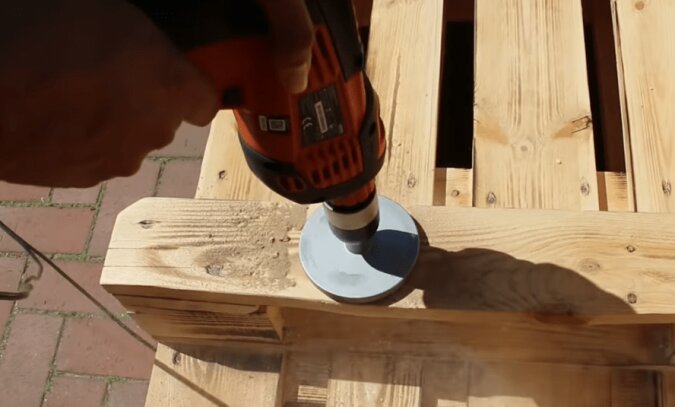 Po ustaleniu kształtu przyszłych mebli ogrodowych oszlifuj deski, aby w przyszłości uniknąć drzazg. Użyj okrągłego wiertła, aby zwiększyć funkcjonalność podłokietników.
