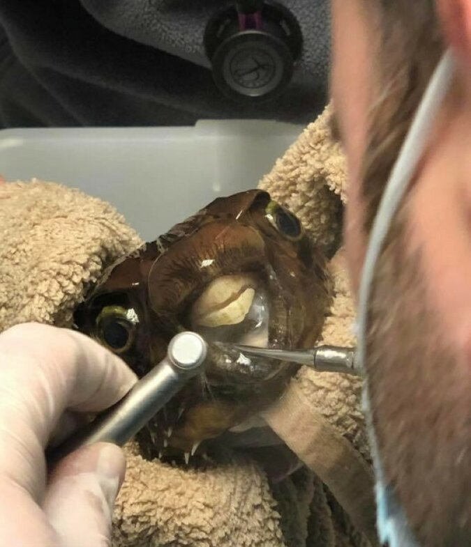 Rybki z gatunku rozdymkowatych mają zrośnięte zęby. To pozwala im łatwo przeżuwać skorupiaki, które stanowią ich główne pożywienie. Ale z jakiegoś powodu w ostatnich miesiącach zęby Goldie rosły szybciej niż zwykle, dlatego właściciel postanowił zabrać ją do weterynarza.
