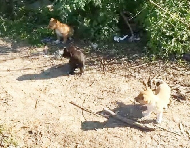 Gdy zobaczył ludzi, młode popatrzyło, po czym nagle uciekło w przeciwną stronę, w kierunku krzaków. Chwilę później wyskoczyły inne szczeniaki! Kilka malutkich stworzeń przywitało się z ludźmi, merdając radośnie ogonami. Małe zwierzęta były oswojone i nie bały się nieznajomych. To było tak, jakby czekały, aż ktoś je zabierze ze sobą!