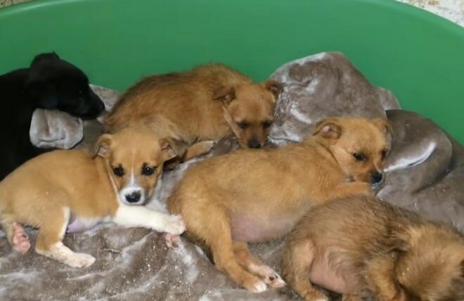 Szczeniaki zostały przebadane przez weterynarza i przebywają obecnie w schronisku. Szczeniaki zostaną zaszczepione i wyleczone z pasożytów zanim wolontariusze znajdą dla nich kochających właścicieli.