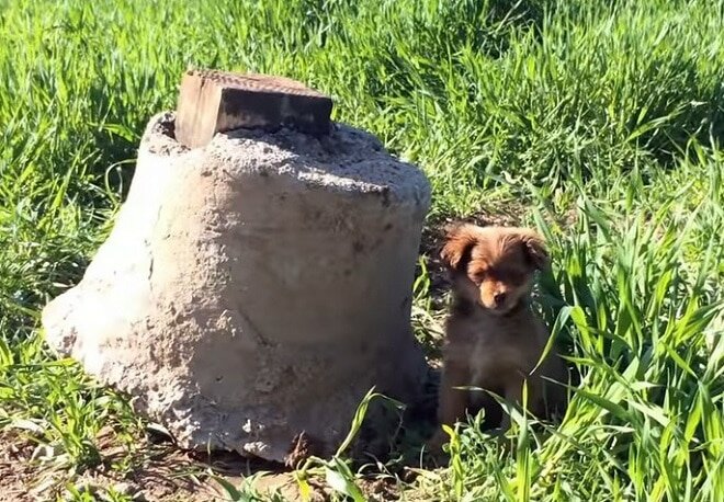 Była to 10-kilometrowa podróż do lasu, którą pracownicy schroniska postanowili przebyć samochodem. Gdy wolontariusze dotarli na miejsce, przywitał ich malutki szczeniak siedzący przy kamieniu. Maluch był ukryty przez gęstą trawę, ale łatwo było dostrzec jego uroczą mordkę!