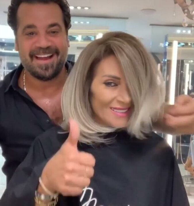 Potem kobieta musiała rozstać się z długimi włosami. Były bardzo zniszczone. Piękna elegancka fryzura na włosach średniej długości wygląda modnie i świeżo.