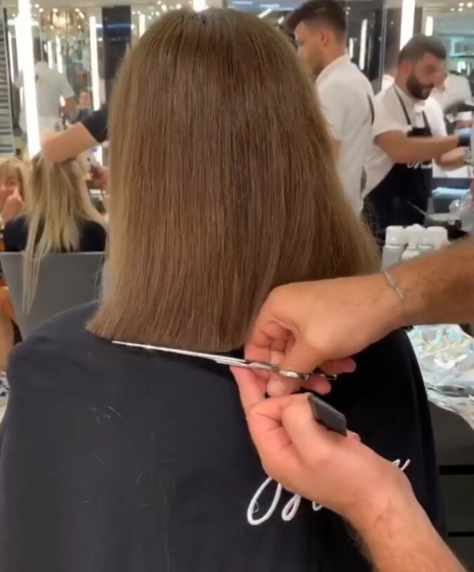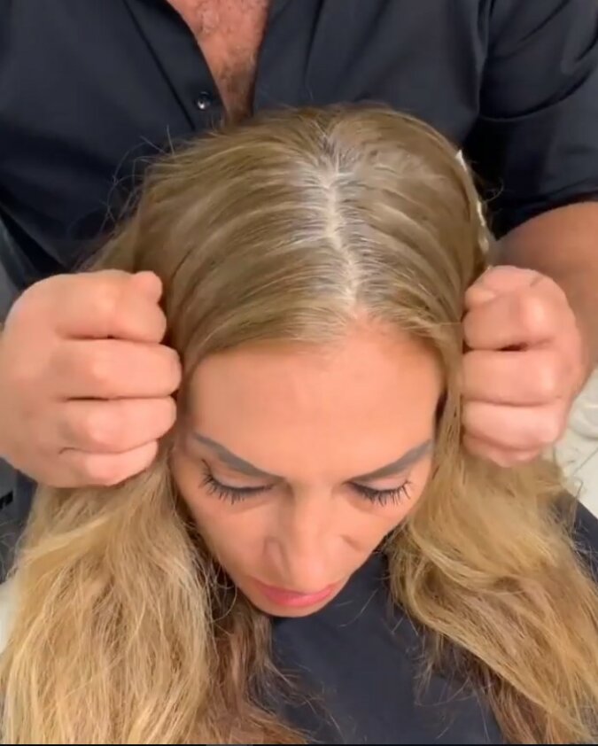 Kobieta zrozpaczona samodzielną pielęgnacją włosów postanowiła zaufać specjaliście. Przede wszystkim mistrz wykonał wymycie farby.