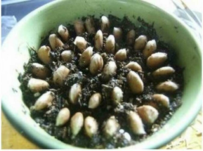 4. Gdy tylko wykiełkują, umieść pestki w ziemi. Podlej niewielką ilością wody.