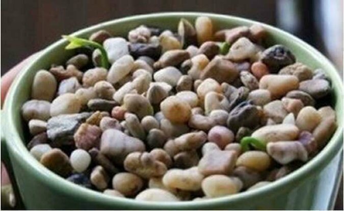 5. Do kubka lub doniczki włóż kilka ozdobnych kamieni jako dekorację.