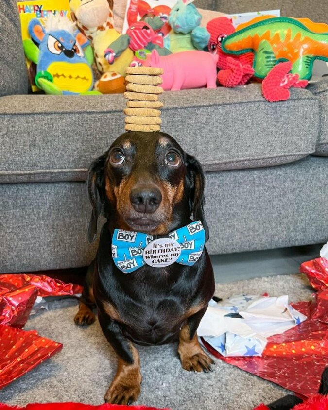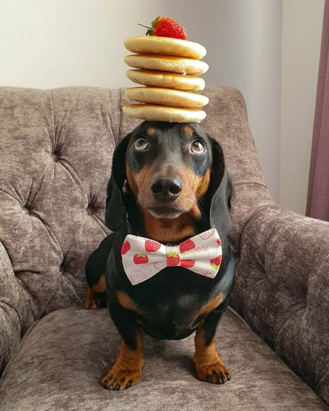 Pewnego razu właściciele zauważyli, że pies potrafi balansować. Potrafił trzymać każdy przedmiot przez długi czas. Jest prawdziwym mistrzem balansowania.
