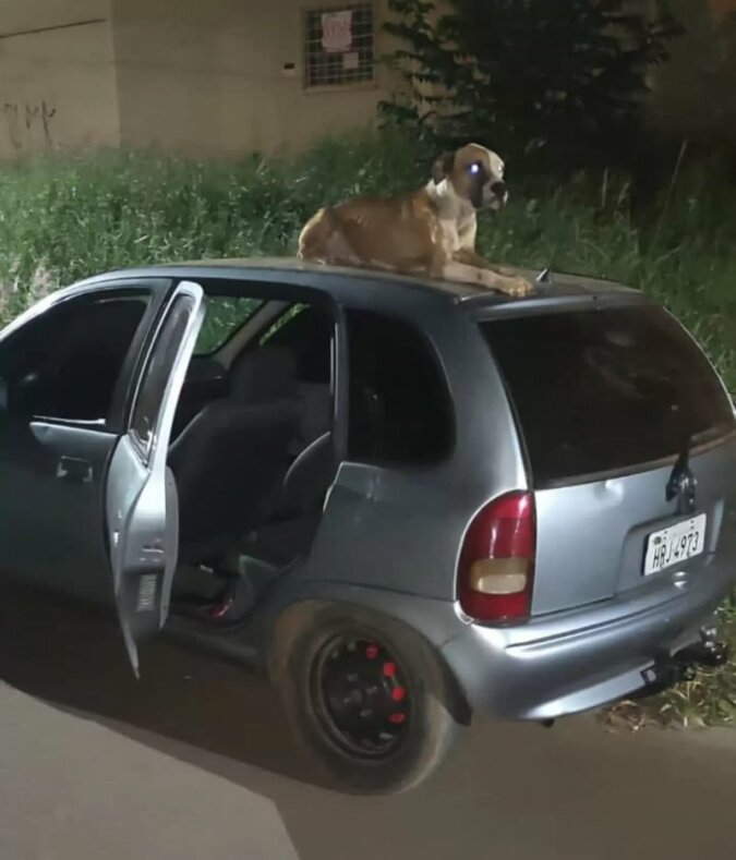 Zapytali go, czy ma psa, ponieważ na dachu jego samochodu leżał pies. Według policji, pies nie pozwalał nikomu zbliżyć się do samochodu. Kiedy właściciel samochodu przybył na miejsce, zauważył, że pies nadal leży na dachu.