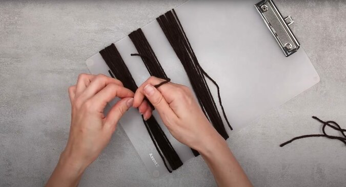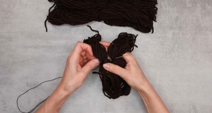 Użyj włóczki, aby zrobić włosy. Należy owinąć około 20-25 nici wokół ciasnej podstawy i związać na środku.