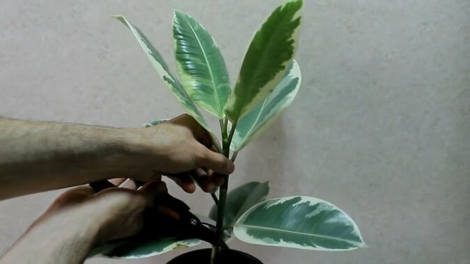 Druga metoda wymaga przycięcia fikusa mniej więcej pośrodku.