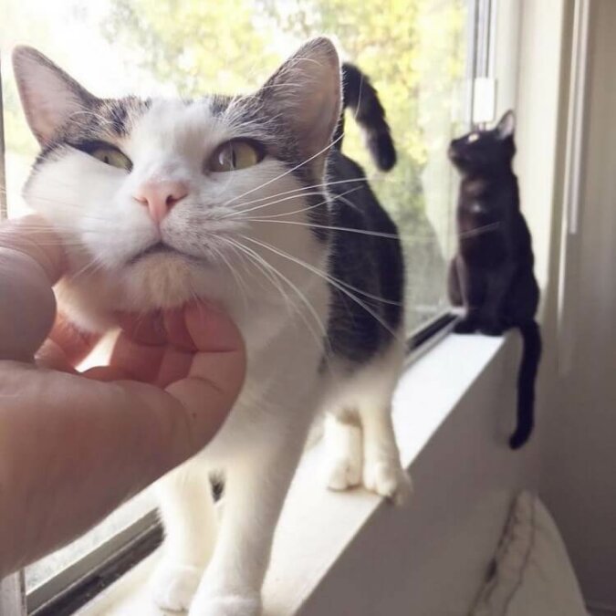 W miarę jak kociaki podrosły, zaczęliśmy szukać dla nich nowych rodzin. Wszystkie oprócz jednego zostały oddane. Został najpiękniejszy kotek. Był puszysty, cały czarny, a na nosie miał białą plamkę. Jego oczy były niesamowicie zielone. Nigdy nie widziałam czegoś takiego.