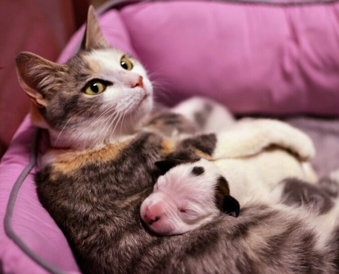 Moja babcia miała kotkę. Pewnego dnia kotka przyniosła do domu małe kociaki. To były cudze dzieci - u sąsiadki była kotka, która niedawno urodziła. Ale matka porzuciła młode, a nasza Kicia zlitowała się nad nimi. Taka już jest. Cóż zrobić, nie możemy ich przecież wyrzucić na ulicę. Ponadto była zima i panował mróz.