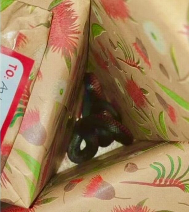 Gunter, głowa rodziny, opublikował zdjęcia pokazujące gada obok stosu prezentów, które przygotowała rodzina.
