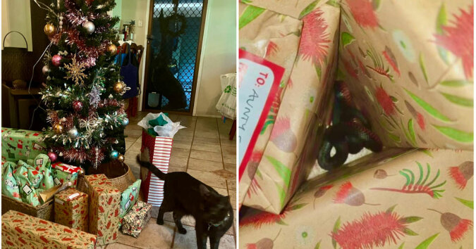 Prezent w postaci jadowitego węża ze strony kota był świąteczną niespodzianką dla pewnej rodziny.