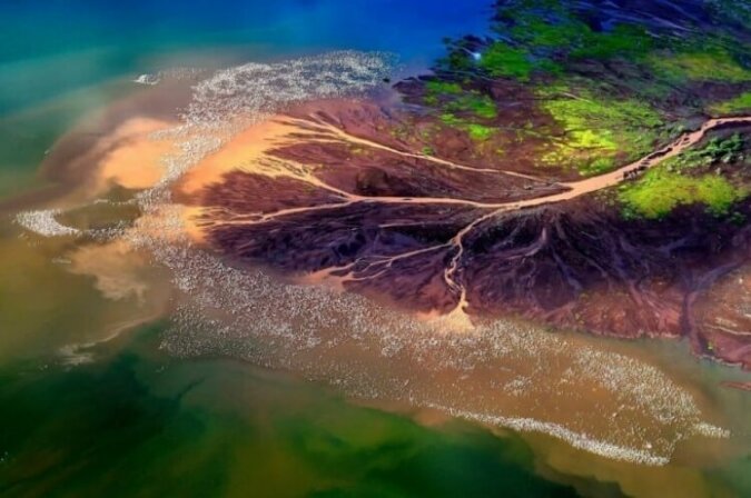Jezioro Bogoria w Kenii, nad brzegiem którego uwielbiają przebywać flamingi.